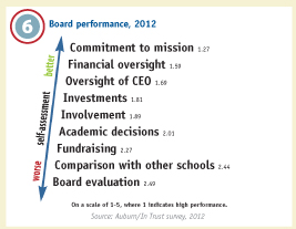 The data on board attitudes and performance self-assessment collected for the present study seem to indicate that questions researchers raised in the earlier study are even more pertinent now: Are board members sufficiently engaged in the strenuous and sometimes life-threatening struggles of their schools? Are they sufficiently critical of efforts (which in many cases have not been successful) to better the conditions of their schools?