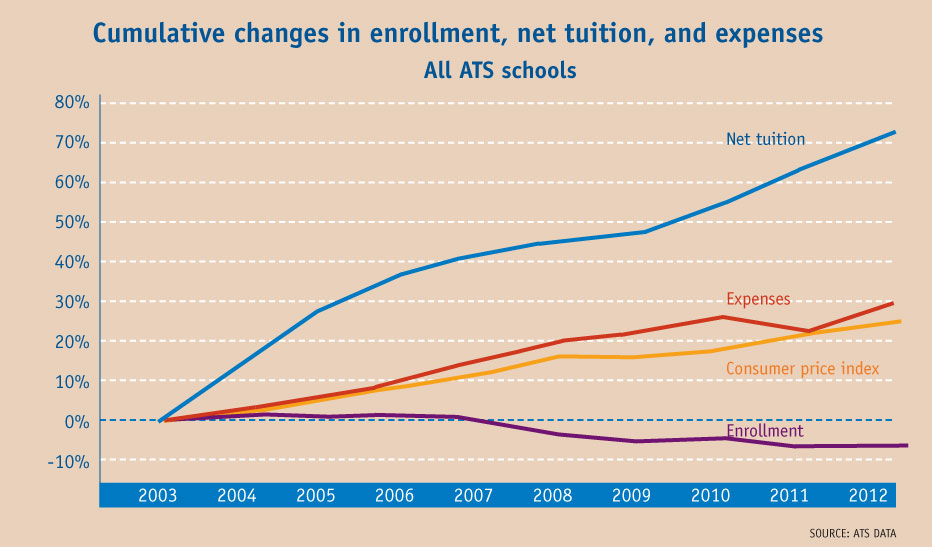 Let me describe theological education as an “industry.” We are part of an industry that has a vital mission that serves the church. But, over the last decade, our student market has been in decline. During this decade we haven’t adjusted our expenses in response to a shrinking market. Rather, expenses have risen even faster than the consumer price index.