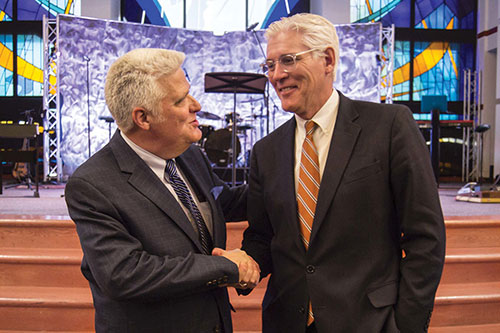 | John Neihof, president of Wesley Biblical Seminary and Everett Piper, president of Oklahoma Wesleyan University.