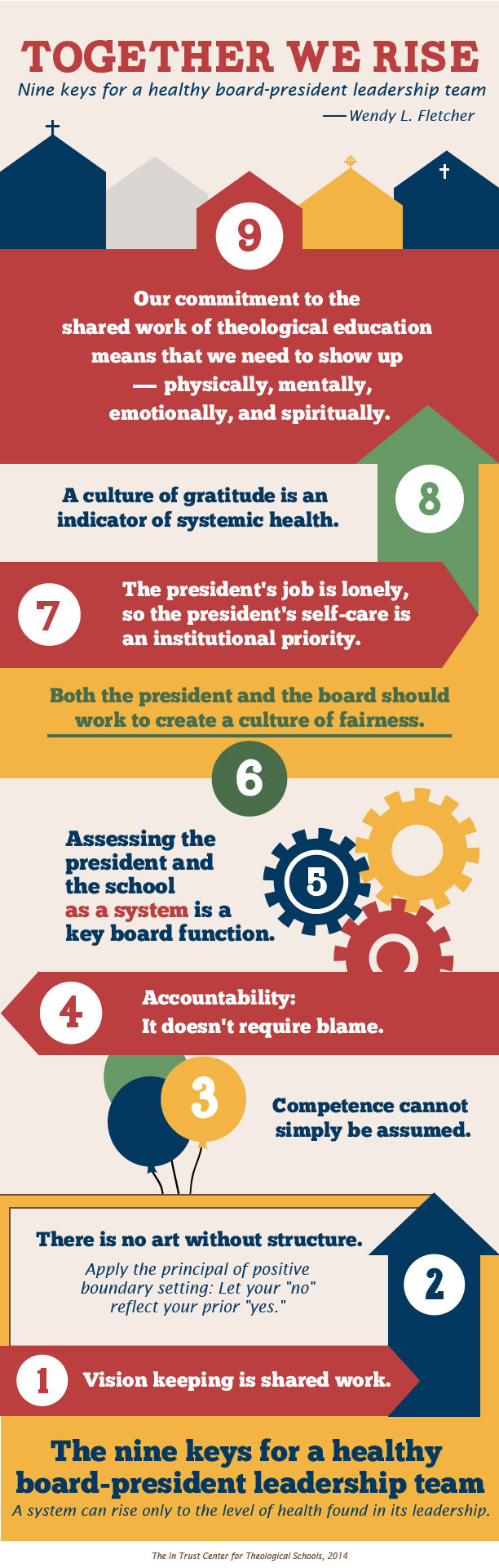 The Autumn 2011 issue of In Trust magazine included an article that addressed that all-important relationship between a school's board and its president. Author Wendy L. Fletcher, then the principal and dean of Vancouver School of Theology, offered nine essential keys for a healthy board-president relationship.