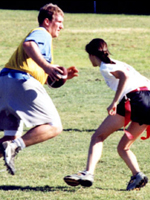 Flag football is one of the activities hosted by Southwestern’s Recreation Aerobics Center to provide social interaction for the seminary family.