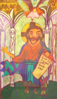 (This image comes from First Street Gallery Art Center, Claremont, California. The center runs a distinctive program for adults with developmental disabilities. The program is founded on the proposition that human potential for creativity and artistic expression is not limited by physical or developmental disabilities. Through cultivation of artistic expression, people with significant challenges can develop creatively and make important contributions to the cultural and economic life of their communities.) |