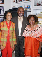| Interdenominational Theological Center president Michael Battle with Sandra Yates (above) and Ann and James Gavin with Marianne Clarke (below) at a recent fundraising reception at the Gavin home. (ITC) |