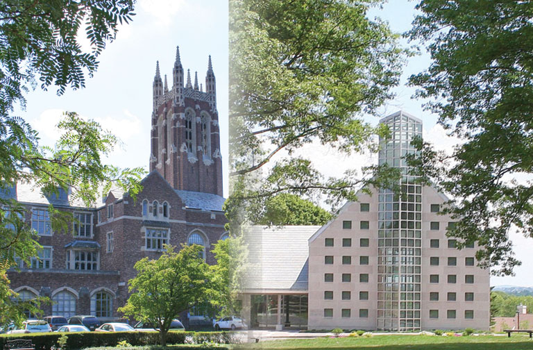 Andover Newton Theological School (right) (Photos by Jay Blossom) |
