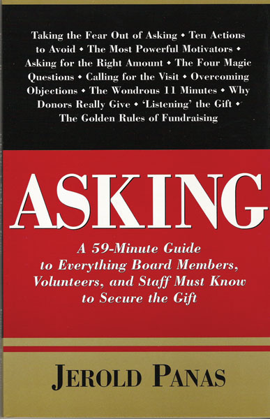 Asking: A 59-Minute Guide to Everything Board Members, Volunteers, and Staff Must Know to Secure the Gift, by Jerold Panas (Emerson & Curch, 2002, 108 pp., $24.95).