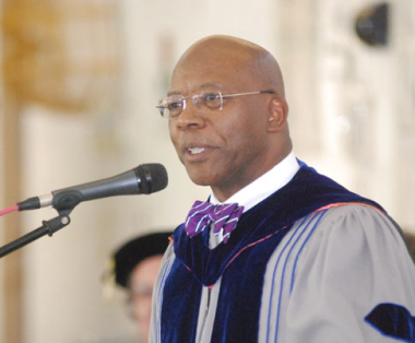 | Student speaker at New Orleans Baptist Theological Seminary’s 2010 commencement ceremony at the Louisiana State Penitentiary at Angola. The program’s graduates have earned associate’s or bachelor’s degrees, meeting the same requirements as on-campus students. (Photo courtesy of New Orleans Baptist Theological Seminary) |