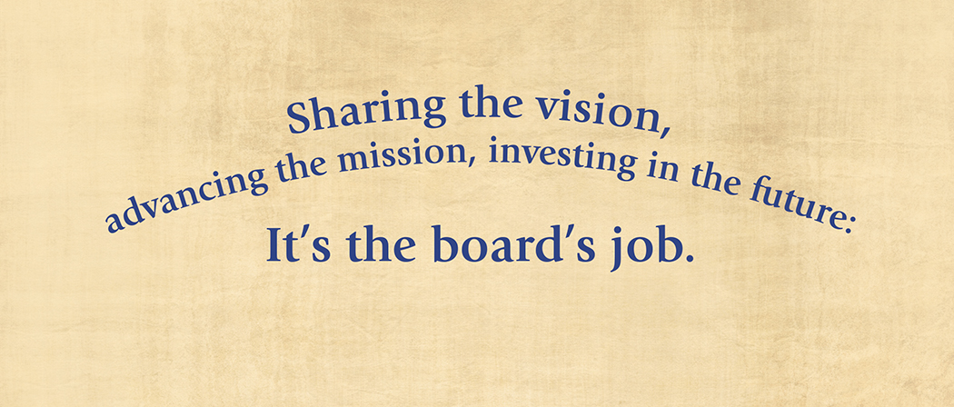 A I often ask board members how this board and this institution will be better as a result of their service. One way board members can demonstrate generosity and mission engagement is by recruiting future supporters, volunteers, or board members. Another way is sharing about the institution in formal and informal ways. I believe that a great board member is also a good teacher who can influence how his or her peers understand board service. An exceptional board member can exemplify service as both opportunity and gift; they lead by their personal investment.