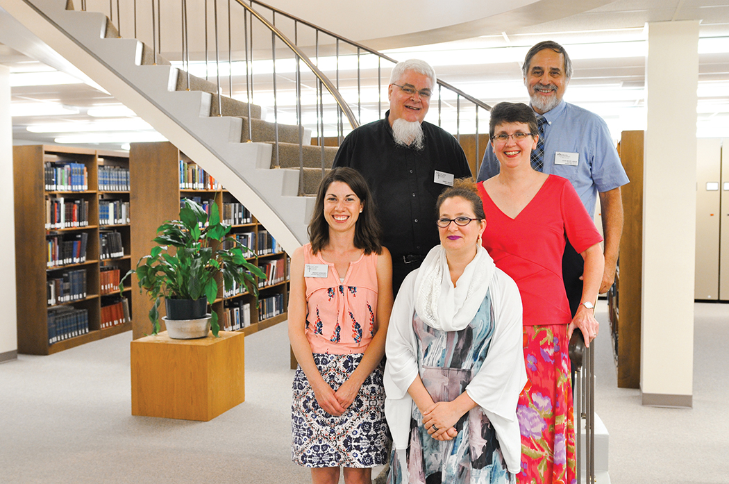 | When Milligan College and Emmanuel Christian Seminary merged, the two institutions’ libraries remained physically separate but strategically united. Pictured here are library staff members (clockwise from top left) Gary Daught, John Mark Wade, Mary Jackson, Jude Morrissey, and Lindsay Kenderes.