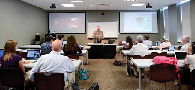 Sweeden: We work hard to train our professors in using the technology, and they’ve developed some good practices over the years. But one important thing to recognize is that the student who’s logging in from their home laptop in Illinois or Costa Rica is going to have a slightly different experience than the eight or 12 students who are sitting in a classroom in Kansas City, even though they’re all in one class.