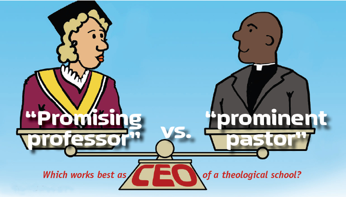 What do seminaries most often want in a new president? Some seek a prominent pastor or denominational leader, while others promote an insider who has moved up through the faculty ranks to the top administrative position.
