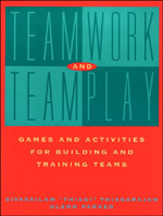 This book by Sivasailam Thiagarajan and Glenn M. Parker—Teamwork and Teamplay: Games and Activities for Building and Training Teams—is an excellent, concise, easy-to-follow resource for anyone working in either team-building or team-training environments. As explained in the book’s introduction, team building “. . . increases the ability of an intact team to work together. . .,” while team training “. . . increases the knowledge and skills of the participants in various aspects of teamwork and being a team player. . . .” The book presents many exercises for each type of team experience.
