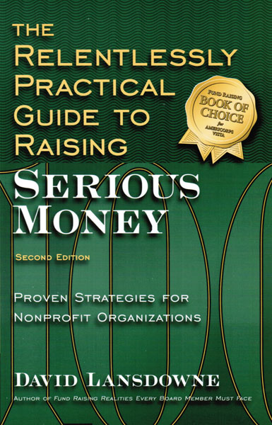 The Relentlessly Practical Guide to Raising Serious Money: Proven Strategies for Nonprofit Organizations, 2nd ed., by David Lansdowne (Emerson & Church, 2008, 237 pp., $24.95).