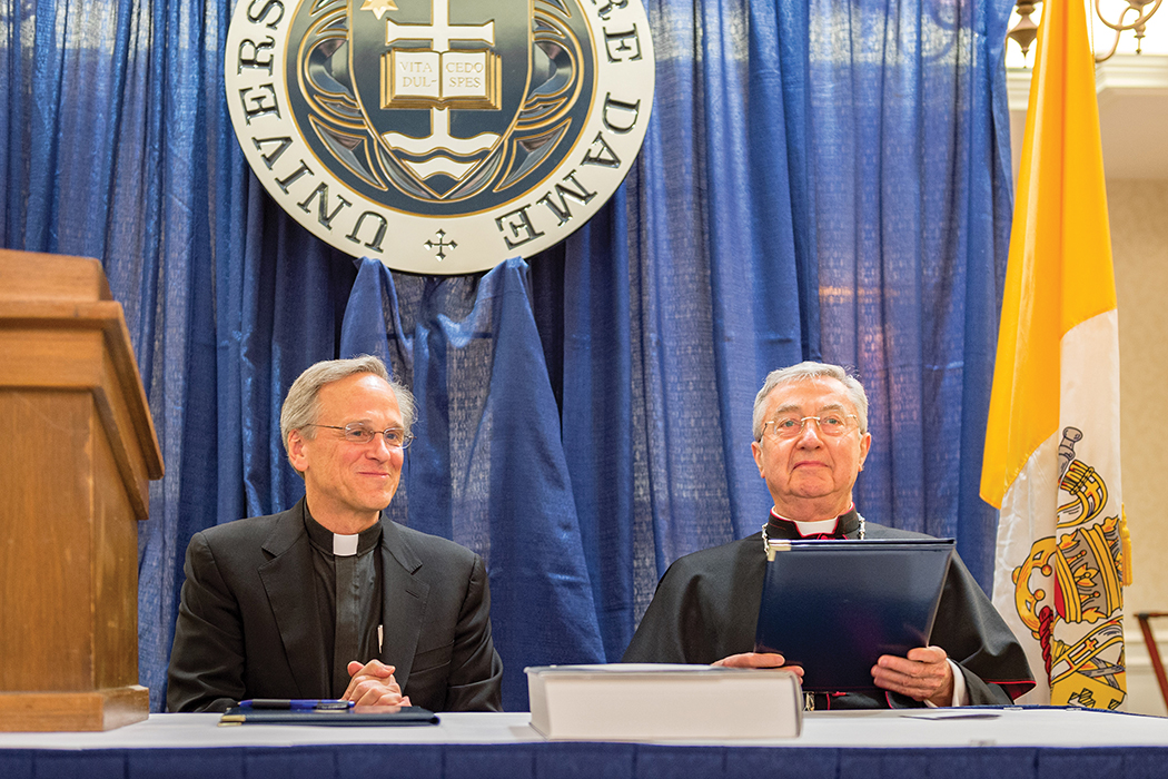 Left: Notre Dame president Father John I. Jenkins, C.S.C. Right: Archbishop Jean-Louis Bruguès, O.P., Vatican archivist and librarian.