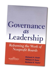 Governance as Leadership: Reframing the Work of Nonprofit Boards, by Richard P. Chait, William P. Ryan, and Barbara E. Taylor (Wiley, 2005, 198 pp., $42)