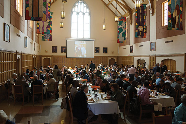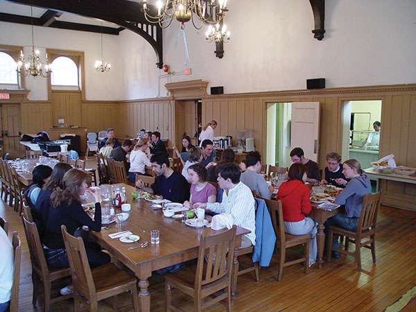 Wycliffe College, an Anglican seminary in Toronto, places a high value on giving students from its five degree programs opportunities to eat together, says Paul Patterson, director of business operations. Students may purchase lunch six days a week at the subsidized rate of just three Canadian dollars (US $2.33). Dinner after Wednesday night chapel is free for students, faculty, and staff, and the most popular M.Div. courses are scheduled after the Wednesday night dinner to encourage strong attendance at the weekly worship and meal.