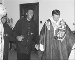 Randall Blakey, a McCormick student and St. Sabina’s Church lay leader, prays before mass with the church’s pastor, the Reverend Michael Pfleger. |