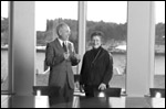 William Close and Charlotte Cochran, in front of their board room window that overlooks the Northwest Arm of Halifax Harbour. Photograph by Sandor Fizli |