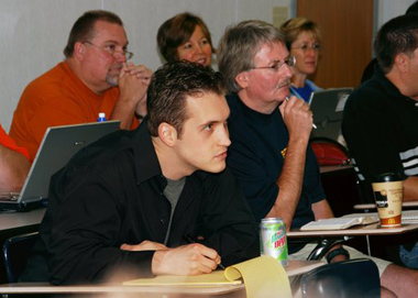 At Bethel Seminary, InMinistry programs appeal to children’s ministers, associate pastors, and other working people who do most of their course work online but gather on campus twice a year. At left, InMinistry participants during the 2007 summer session. (BETHEL UNIVERSITY) |