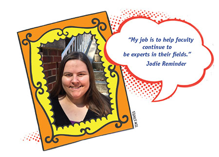 “Faculty members are the experts in their fields,” says Reminder, who has a master’s degree in learning strategies from Purdue University. “My job is to help them continue to be experts in their fields. They shouldn’t have to read tech manuals. That’s my responsibility. In some ways I’m a sounding board; I do a lot of listening.” Based on that listening she helps them “translate what they do in the classroom to an online experience.”