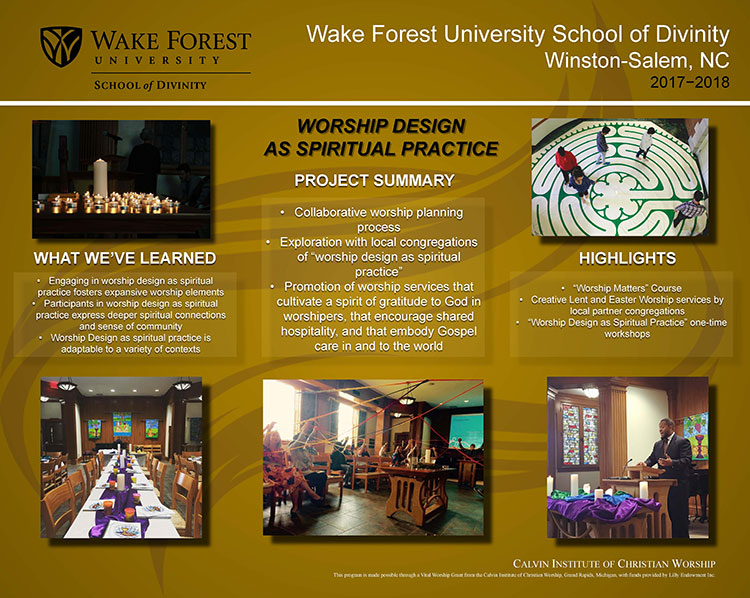 Participants in the grants program also reflected on the wonderful opportunities to meet each other and other worshiping community project directors at the Vital Worship Grants Colloquium, held at Calvin College each June. One reported that “seminary and college communities have their own challenges of pedagogical and liturgical practices within an ever-changing congregation and the wide ecumenical diversity of those contexts. Meeting leaders from other institutions, sharing a meal and extended conversation, was most helpful.”