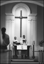The sermon lasts perhaps ten minutes. The pastor stands front and center, often on the floor in front of the altar rail, not in the pulpit. Sometimes he focuses on a social issue, but more often he speaks of the dilemmas of personal life and relationships, with an emphasis on healing and hope. He is not particularly demonstrative, but most of his sermons radiate an intensity to which people respond quite positively.