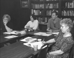 Students (from left) Fran Callaway, Cynthia Graham, Richard Newman, and Roberta Shaffer in Hickman’s class, which he titled “Issues in Practical Theology from Cain and Abel to Clinton and Starr.”.