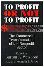 This collection of fifteen essays (To Profit or Not to Profit: The Commercial Transformation of the Nonprofit Sector)—three by Northwestern University economist Burton A. Weisbrod, five co-authored by him, and the balance by such illuminati as Estelle James, Dennis R. Young, Walter W. Powell, and Helmut Anheier, among others—documents and decries the increasing commercialization of the nonprofit sector.