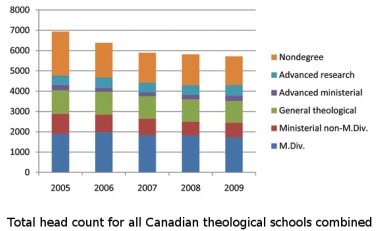 Most theological schools in Canada, though modest, have weathered the recent economic storm. The challenge going forward is whether these seminaries, given their history and context, can be transformed to serve a church in Canada that cannot yet be seen. That may well mean a future with fewer schools. According to theologian Douglas Harink of The King’s University College in Edmonton, it may depend upon a capacity and willingness to return to theology as the proper subject matter for theological education: “the unsurpassable and all determining reality of God in Jesus Christ, a reality attested in the Holy Scripture and in the people of God created by the gospel.” For when all is said and done, the real context of theological education is not the United States or Canada, it is the coming reign of God.