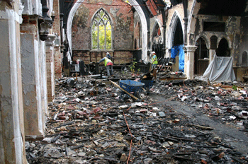 “The first 48 hours are very stressful,” says Ian Markham, dean and president at Virginia Seminary. “Public adjusters started calling while the fire was still burning.” The first decision that Markham had to make was whether to use one of these companies, which negotiate with insurers. As go-betweens, public adjusters traditionally take 10 percent or more of the recovered funds, and “they are loathed by the insurance companies,” says Markham. “But a lot of churches and nonprofits use them. People need an advocate to do the leg work, talk the insurance lingo, and negotiate a fair settlement.”