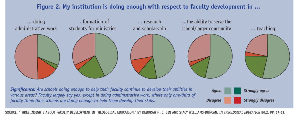 From the publisher: In 2014, Deborah H. C. Gin and Stacy Williams-Duncan began an in-depth study of seminary faculty members’ views on their preparation for their role, their sense of collective vocation, teaching online, and more. Their insights were published preliminarily as “Faculty Perceptions about Their Work: Four Snapshots of Faculty in ATS Schools,” which appeared in the January/February 2016 edition of Colloquy, the online newsletter of the Association of Theological Schools. Later their conclusions were published in a longer form as “Three Insights about Faculty Development in Theological Education,” which appeared in Theological Education 50:2 (2017), pp. 79–101. In this edited excerpt, they share some of the lessons (and surprises) that emerged from the project.
