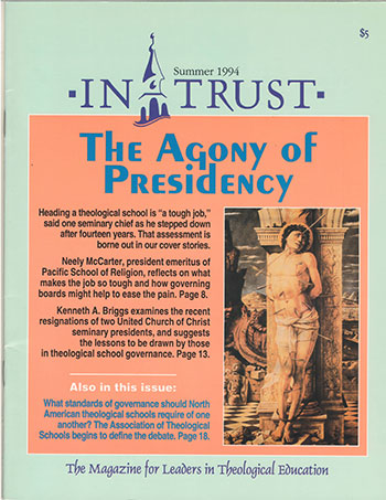 Reach thousands of seminary administrators, trustees, and others in positions of leadership in North American theological schools — an audience that cares about good governance, effective leadership, and current religious issues — by advertising in In Trust!